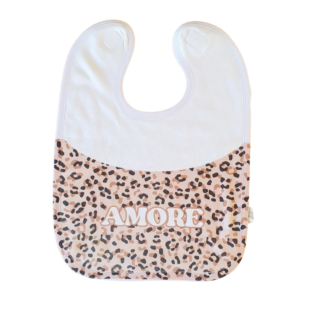 Grand bavoir sublimé Amore 100% polyester avec un arrière en tissus éponge.