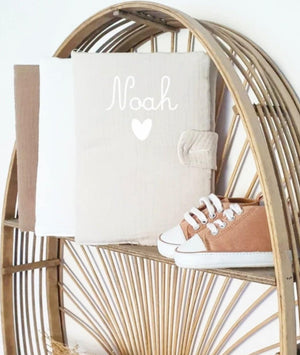 Choisissez votre prénom, indiquez le numéro de police d'écriture ainsi que la couleur d'écriture que vous souhaitez seul ou avec un logo et créons votre carnet de santé unique!
